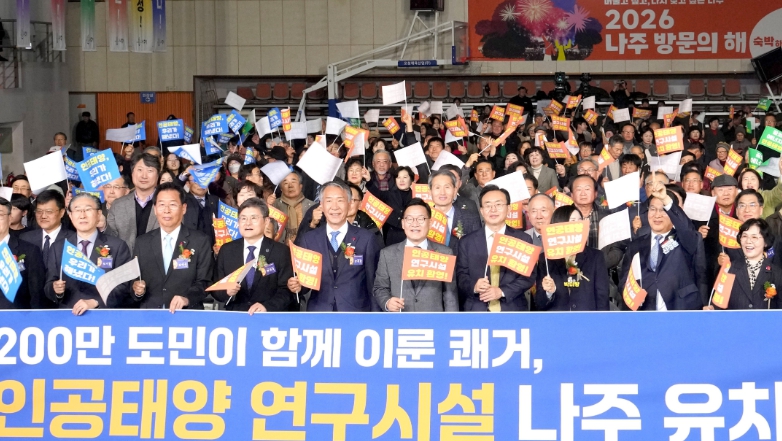 ‘대한민국 에너지 수도 전남 나주, 인공태양을 품다!’라는 슬로건 아래 열린 이날 행사에는 강위원 전남도 경제부지사, 윤병태 나주시장, 신정훈 국회의원, 지역 대학·산업계·연구계 인사와 유치위원회 위원, 도민 등 900여 명이 참석했다. 이들은 인공태양 연구시설 유치 감격을 함께 나눴다. 가수 축하공연 등도 이어져 행사 분위기를 더욱 뜨겁게 달궜다.
