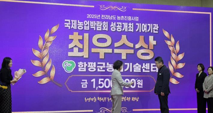 함평군은 지난 11일 전라남도농업기술원(나주시 산포면)에서 열린 “2025 국제농업박람회 성공개최 기여 종합 평가’에서 최우수상을 수상했다고 18일 밝혔다.