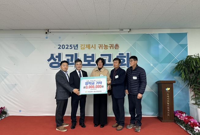 정성주 김제시장은“귀농귀촌인들이 안정적으로 정착하고 성장할 수 있도록 지속적인 관심과 지원을 아끼지 않을 것이며, 지역 인재 양성을 위해 뜻깊은 후원을 해주신 김제시 귀농귀촌협의회에 깊이 감사드린다”고 전했다.