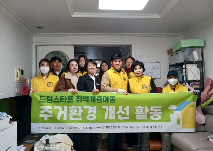 해당 가정은 드림스타트 아동복지기관협의체 회의를 통해 선정된 가구로, 비위생적인 주거환경 개선이 시급한 상황이었다. 이번 봉사활동은 국제로타리 3710지구 서영숙 의원의 솔선수범으로 추진됐으며, 화순로타리클럽 회원과 제2지역 회장단 소속 자원봉사자 10여 명이 참여했다.