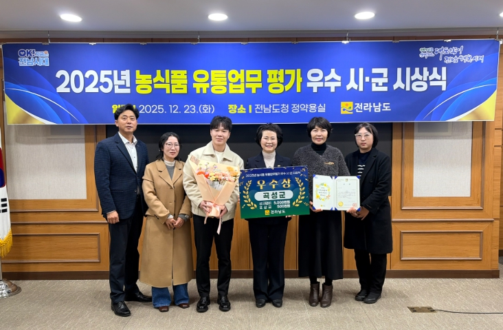 ![]() 전남 농식품 유통업무 우수 시군 평가 ‘우수상’ 수상 |