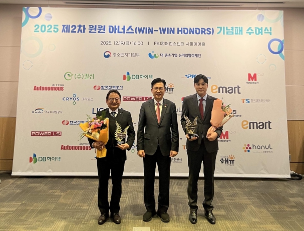 ![]() 시상식_왼쪽부터 한전 에너지생태계조성처 중소벤처사업실장 오창수, 중소벤처지원부 이병권 제2차관, 칼선 안용진 대표 |