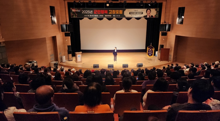 이번 강연은 다사다난했던 2025년을 지나온 군민들이 잠시 바쁜 일상과 긴장을 내려놓고 스스로의 마음을 돌아보며 한 해를 정리할 수 있는 시간이 됐다. 연말을 맞아 ‘쉼’과 ‘공감’을 주제로 진행된 이번 포럼은 군민들로부터 큰 공감을 얻었다.