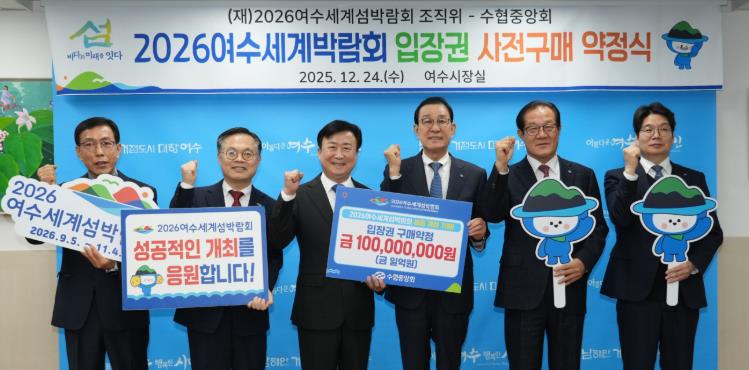 정기명 조직위원장(여수시장)은 “여수 해양수산단체의 참여에 이어 수협중앙회가 동참해 주신 것은 섬박람회에 큰 힘이 된다”며 “앞으로도 다양한 기관·단체와의 협력을 통해 입장권 판매 확대와 섬박람회 붐 조성에 최선을 다하겠다”고 밝혔다.