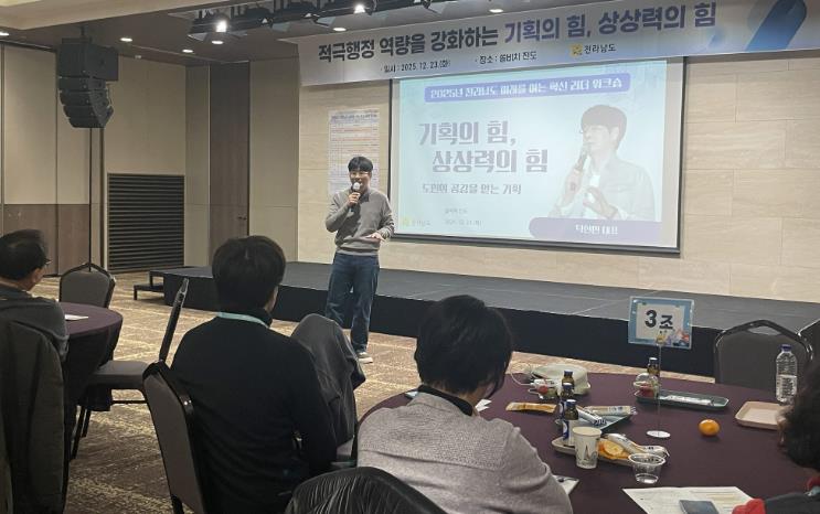 전남도 관계자는 “이번 워크숍은 공직자들이 혁신행정에 대한 공감대를 한층 넓히는데 큰 도움이 됐다”며 “전남도 공직자들이 기획력과 상상력을 바탕으로 도민이 체감하는 정책 성과를 창출하는 미래형 행정 리더로 성장하는 계기가 될 것”이라고 말했다.