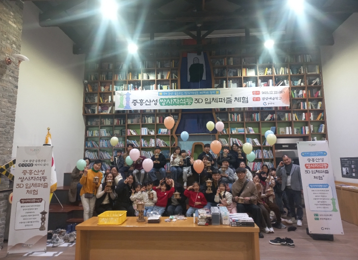 이번에 선보인 ‘중흥산성 쌍사자 석등 3D 입체퍼즐’은 원본 석등의 비례와 구조를 최대한 사실적으로 구현한 교구재로, 섬세한 조각기법과 뛰어난 조형미를 시민 눈높이에 맞게 풀어낸 점이 특징이다.