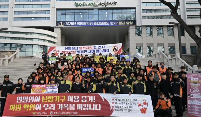 참가자들은 군청 앞 주요 통행 구간에서 군민들을 대상으로 ▲겨울철 난방기기 안전사용 요령 ▲주택용 소방시설(소화기ㆍ단동경보형감지기) 설치의 중요성 ▲안심콜 서비스 가입 홍보 등을 집중적으로 홍보하며 리플릿 배부와 현장 안내 활동을 펼쳤다. 특히 전기장판과 난로 등 난방기기 사용이 잦아지는 겨울에는 작은 부주의가 대형 화재로 이어질 수 있다는 점을 강조했다.