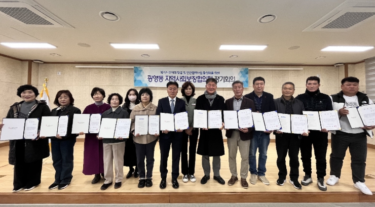 이번 회의는 ▲2025년 제11기 지역사회보장협의체 위원 위촉장 전수 ▲이정현 전 민간위원장 감사패 전달 ▲2025년 지역사회보장협의체 사업 추진 결과 보고 ▲2025년 광영동 지역자원 연계 결과 공유 ▲2026년 광영동 지역사회보장협의체 운영 및 사업 계획(안) 심의 ▲제11기 부위원장 선출 및 협의체 운영 활성화 방안 논의 순으로 진행됐다.