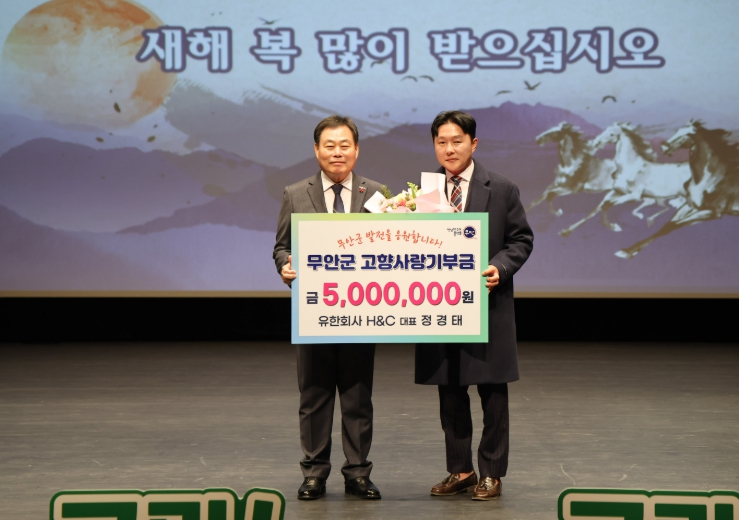 정경태 대표는 2023년 고향사랑기부제 시행 이후 매년 무안군 첫 기부자로 참여하며 고향 발전을 위한 나눔을 꾸준히 실천해 오며 올해 기탁을 포함한 정 대표의 누적 고향사랑기부금은 총 2,000만 원에 달한다.