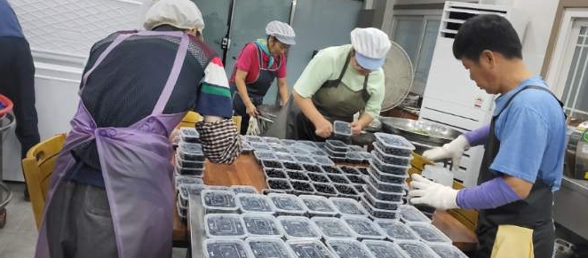 ![]() 화순지역자활센터 도시락사업단에서 아동급식 도시락을 준비하고 있는 모습 |
