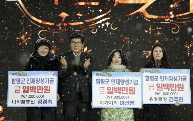 ![]() 함평 겨울빛축제 폐막식 인재양성기금 기탁 사진 |