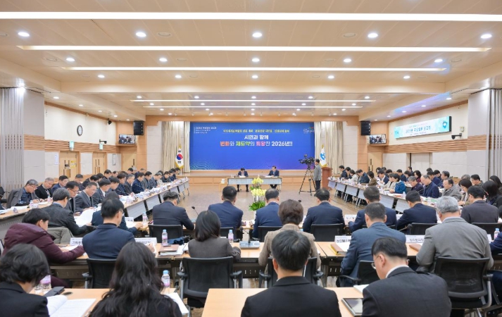 ![]() 여수시는 지난 15일 시청 회의실에서 5급 이상 간부 공무원 70여 명이 참석한 가운데 2026년 주요업무 보고회를 개최했다. |