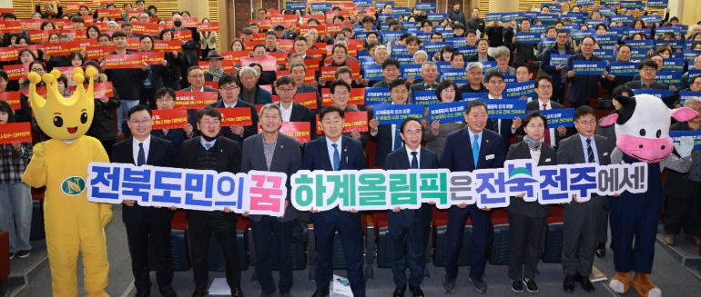 ![]() 16일 임실군청에서 열린 '도민과 함께하는 2026년 시군 방문'에 김관영 전북특별자치도지사와 심민 임실군수 및 참석자들이 도민과의 대화 시간을 갖고 하계올림픽 유치희망 피켓을 들고 기념촬영을 하고 있다 |