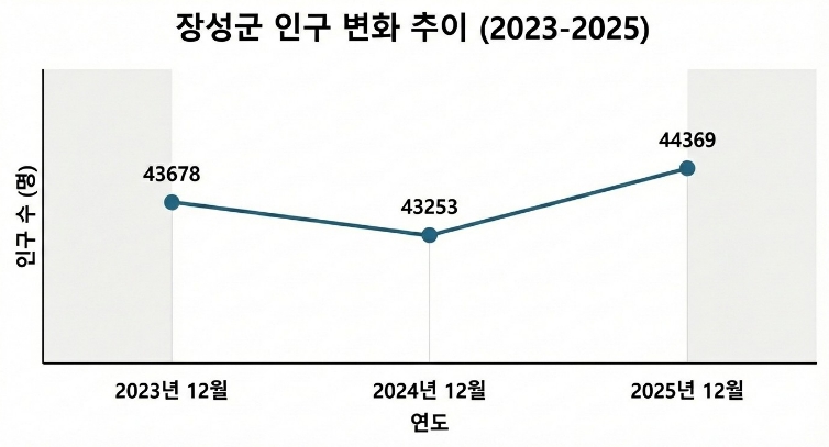 ![]() 지난해 12월 기준 장성군의 인구가 1년 전인 2024년 12월보다 1116명 증가한 것으로 나타났다. |