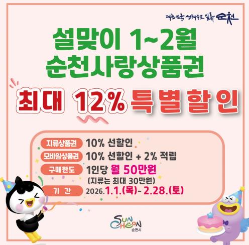 ![]() 순천사랑상품권 “최대 12% 혜택” 새해 소비 총력전 |