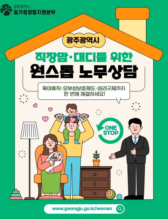 원스톱 노무상담은 일가정양립지원본부 소속 상근 노무사가 직접 상담을 진행하며 출산휴가, 육아휴직, 육아기 근로시간 단축 등 법·제도 정보를 제공한다.