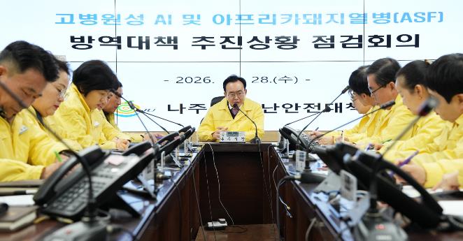 이와 관련 나주시 재난안전대책본부는 이날 윤병태 시장 주재로 상황관리회의를 열고 아프리카돼지열병과 고병원성 조류인플루엔자 대응 현황을 점검하는 한편 관계 부서 간 협업체계를 강화하고 선제적 대응 방안을 논의했다.