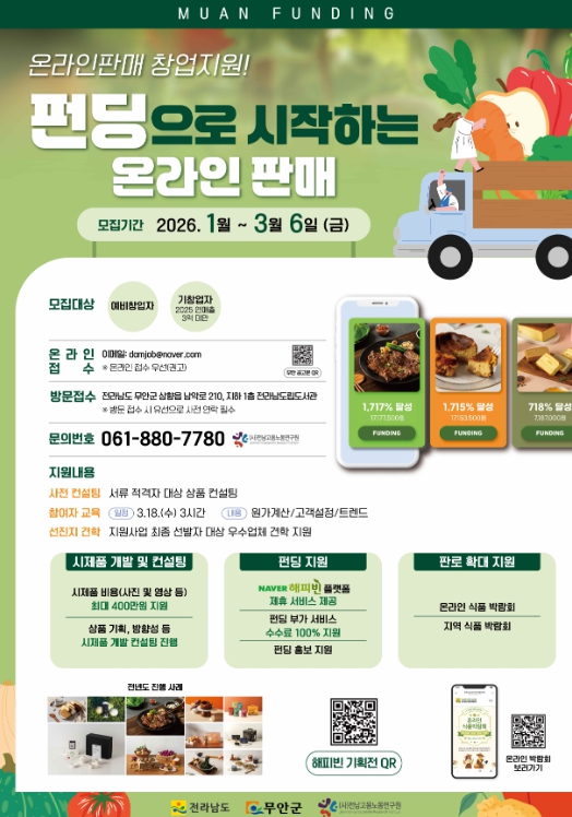 이번 사업은 무안 지역 원물을 활용한 상품 개발과 크라우드 펀딩을 연계해 식품 가공·제조 분야의 시장성과 투자가치를 확보하고, 지역 내 안정적인 일자리를 창출하기 위해 추진된다.