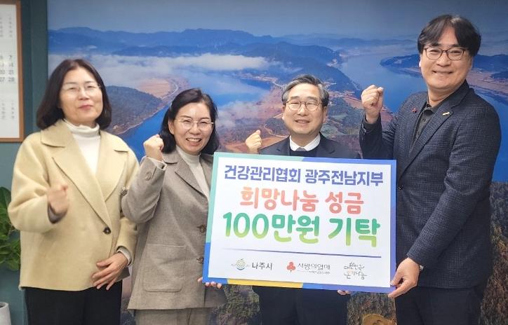이번 기탁식에는 나주시 강상구 부시장과 김효경 복지환경국장, 건강관리협회 광주전남지부 이효진 운영관리부장 등이 참석했다