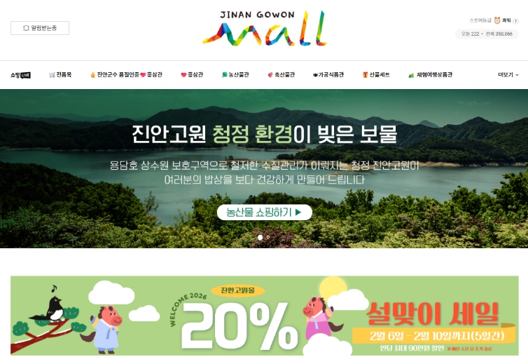 먼저 온라인 쇼핑몰인 ‘진안고원몰’은 2월 6일부터 10일까지 5일간 전 품목 20% 할인 행사를 추진한다. 군 대표 특산품인 진안홍삼을 비롯해 과일, 가공품, 축산 등 다양한 제품이 입점해 있어 고객들의 선택의 폭이 넓다. 또한 1인당 최대 90만 원 한도 내에서 파격적인 할인 혜택을 제공하고 있어 명절 선물을 대량으로 구매하는 소비자들에게 큰 도움을 줄 것으로 기대된다.
