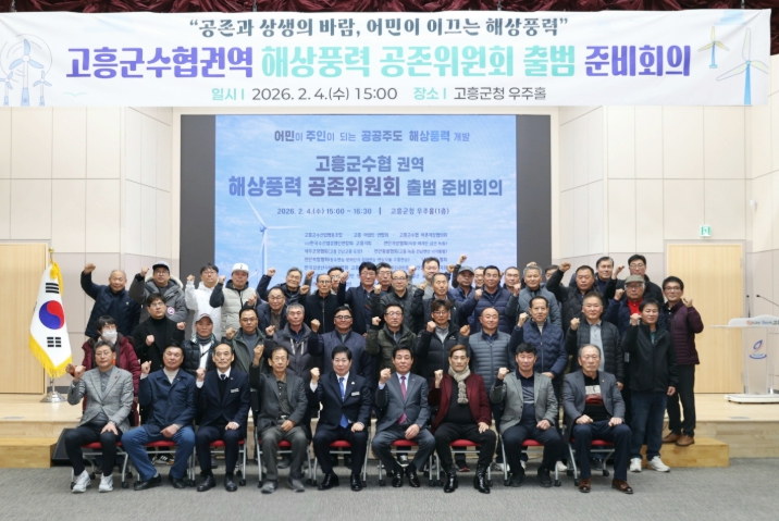 군은 4일 군청 우주홀에서 공영민 군수를 비롯해 이홍재 고흥군수협장, 어민 대표위원 등 90여 명이 참석한 가운데 ‘고흥군수협 권역 해상풍력 공존위원회 출범 준비회의’를 개최했다.