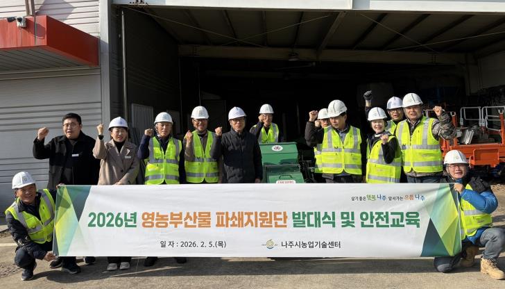![]() 나주시는 지난 5일 2026년 영농부산물 파쇄지원단 발대식을 가졌다.(사진 제공-나주시) |