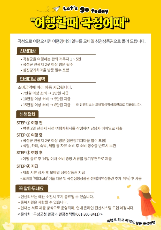 ![]() 곡성군 여행 인센티브 지원사업 안내 포스터 |