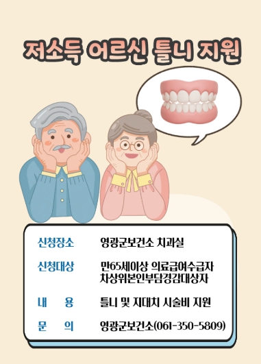 ![]() 영광군,저소득 어르신 틀니지원사업 |