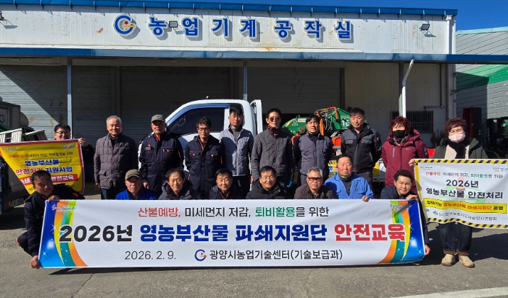 ![]() 2026년 영농부산물 파쇄지원단’ 본격 운영을 앞두고 안전교육과 함께 발대식 및 캠페인 |