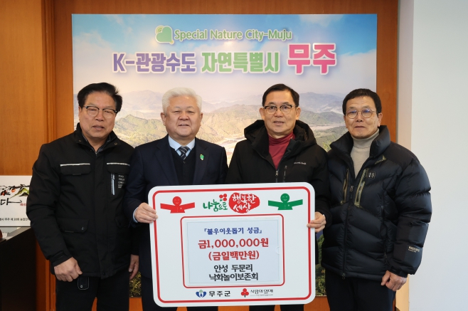 박일원 회장은 “지역의 전통문화를 계승하는 단체로서 지역사회 발전에 이바지하고 이웃을 위한 나눔 실천에도 앞장서고 있다는 데 자부심을 느낀다”라며 “앞으로도 다 같이 행복한 무주를 만들기 위한 나눔 활동에 최선을 다할 것”이라고 밝혔다.