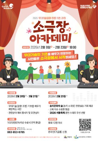 ![]() 무대 전문가 키운다…익산시 '소극장 아카데미' 운영 |