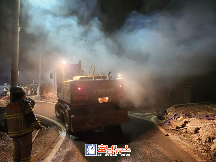 Three Houses Destroyed in Bukpyeong-myeon Fire… Injured During Initial Firefighting Attempt
