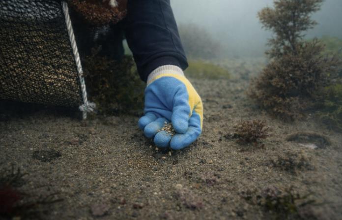 ![]() 잘피 씨앗을 뿌리는 모습 |