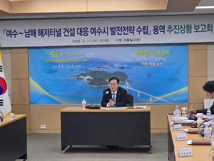 해당 용역은 지난해 2월부터 (재)한국자치경제연구원이 수행 중이며 여수~남해 해저터널 개통에 따른 교통·관광·산업·도시공간 구조 변화에 능동적으로 대응하고, 여수시의 미래 성장동력을 확보하기 위한 종합적인 발전전략을 수립하는 데 목적이 있다.