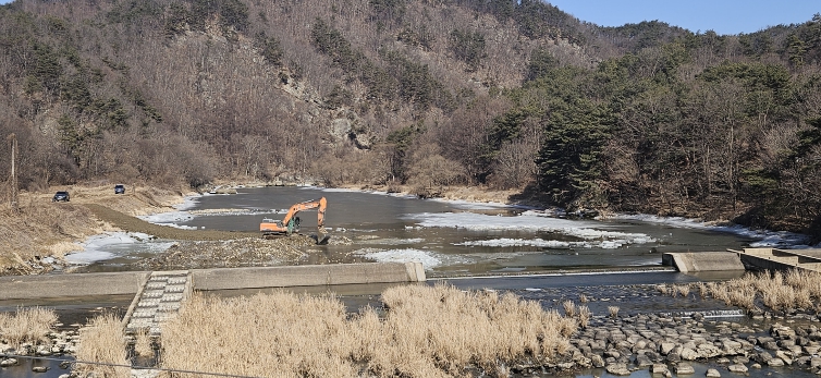 ![]() 진안군, 겨울 가뭄 속 생활용수 위기 선제 대응으로 극복(섬진강 준설공사사진) |