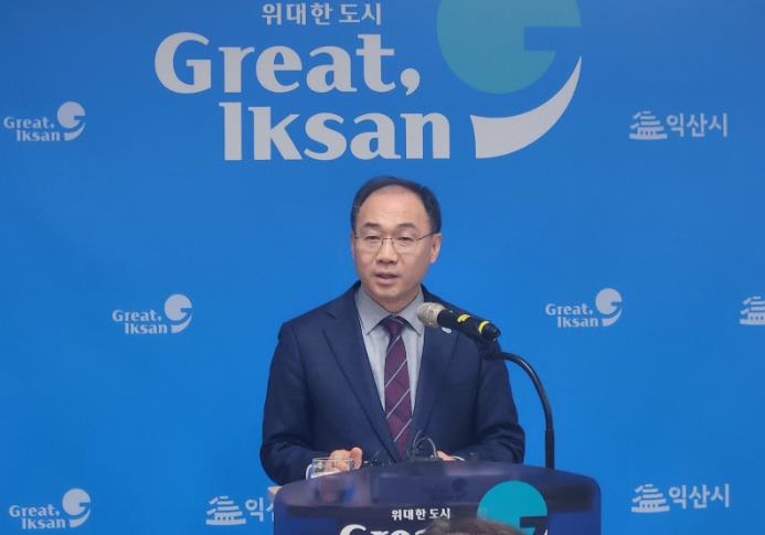 ![]() 최재용 익산시 부시장 브리핑 모습. |
