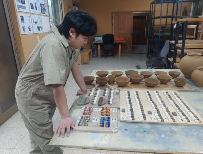 ![]() 차세대 도예작가가 선택한 고흥, 2026년 입주작가 프로그램 본격 시작 - 나도준 입주작가 도자기 만들기 전 태토, 화장토, 유약 등 데이터 분석하고 있는 모습. |