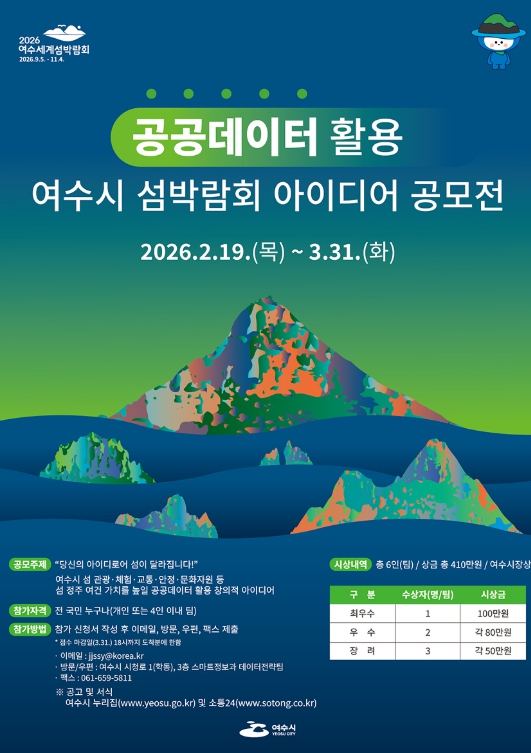 한편, 여수시는 이번 공모전을 2026여수세계섬박람회 성공 개최를 위한 지속 가능한 정책 발굴 사업과 연계해 추진할 계획이며 소통24를 활용해 국민 참여를 확대하고, 데이터 분석 기반의 섬 맞춤형 정책을 실현에 나설 방침이다.