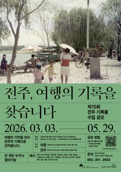 시는 오는 3월 3일부터 5월 29일까지 ‘전주, 여행의 기록을 찾습니다’를 주제로 ‘제15회 전주 기록물 수집 공모전’을 개최한다고 23일 밝혔다.