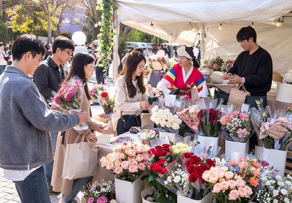 축제장 판매 부스에서는 꽃다발, 꽃바구니, 한 송이 포장 상품 등 다양한 상품을 준비해 관광객 선택의 폭을 넓혔다.