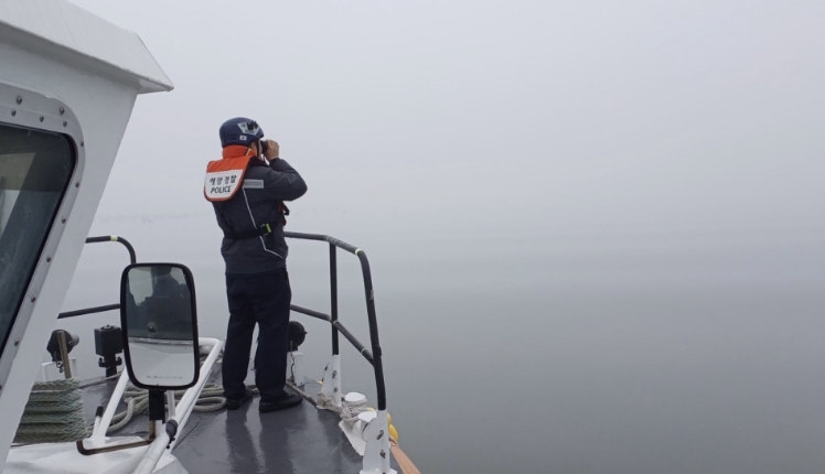 ![]() 짙은 농무 속 해상 수색 중인 완도해경의 모습 |