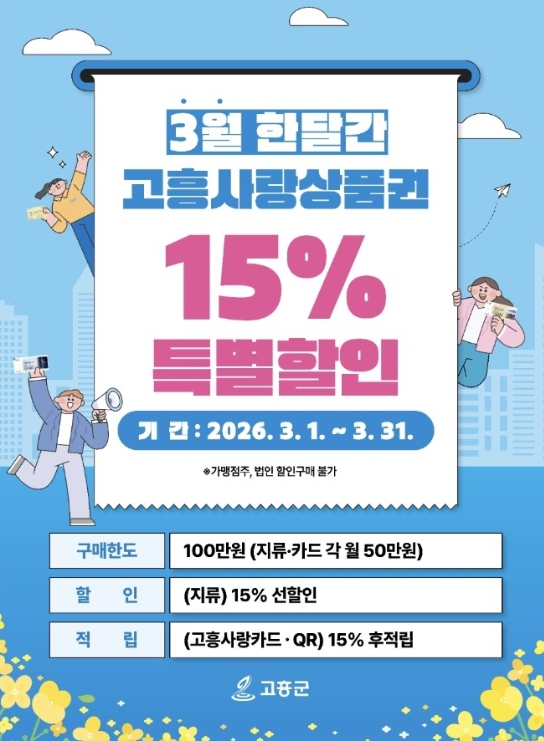 ![]() 3월 고흥사랑상품권 15% 특별할인 |