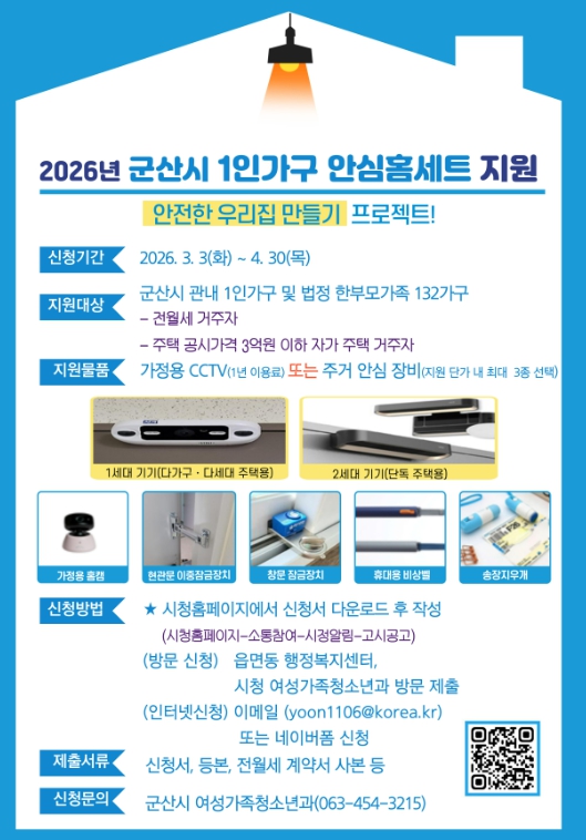 군산시 관계자는 “이번 사업은 1인 가구와 한부모가족이 안심하고 생활할 수 있도록 돕기 위해 마련됐다”며 “앞으로도 시민 생활과 밀접한 사업을 지속적으로 확대해 나가겠다”고 말했다.