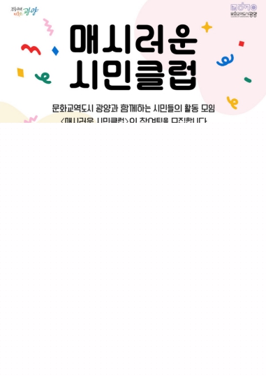 ![]() 광양문화도시센터 매시러운 시민클럽 7기 참여팀 공모 문화예술과(홍보문) |
