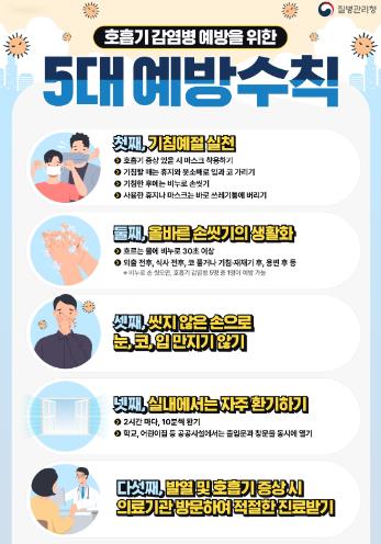 아울러 일상 속 감염병 예방을 위해 △비누로 30초 이상 손씻기 △기침 예절 실천 △실내 자주 환기 △호흡기 증상 시 마스크 착용 및 신속한 진료 등 기본적인 개인위생 수칙을 철저히 지켜줄 것을 당부했다.