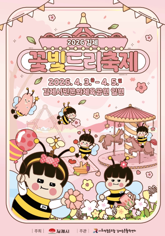 한편, 2026 김제꽃빛드리 축제장 내 먹거리 및 지역 농특산물 등 판매 부스 운영을 위한 참여자 모집은 3월 4일부터 3월 11일까지 진행되며, 세부 프로그램 일정은 김제시 공식 홈페이지 및 SNS를 통해 순차적으로 안내될 예정이다.