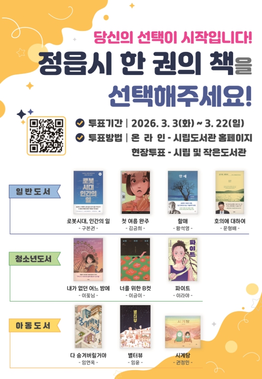 ![]() 정읍시, 2026년 ‘한 권의 책’ 시민 투표 실시 |