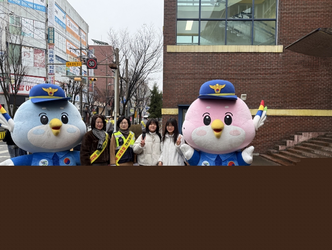 현장에서는 자치경찰 마스코트 ‘안전이’와 ‘행복이’가 “스쿨존의 노란 약속, 횡단보도 앞은 일단 멈춤!” 문구가 적힌 플래카드를 들고 등굣길 학생들을 맞이했다.