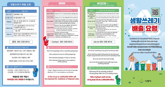 ![]() 베트남어·중국어 등 6개 언어로 제작한 생활폐기물 적정배출 다국어 리플릿. |