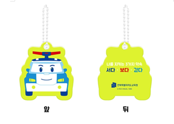 교통안전 반사경은 연결고리 형태로 가방에 간편하게 부착, 보행 중인 어린이의 시인성을 확보하고 안전사고를 선제적으로 예방하기 위해 제작됐다.